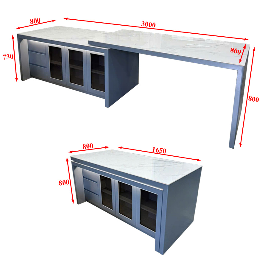 - Kích thước tủ đảo: (D) 1600 x (R) 800 x (C) 730mm