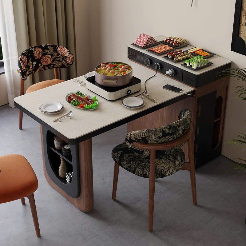 Tích hợp bếp từ riêng trên mặt bàn, cho phép nấu nướng trực tiếp và tiện lợi ngay tại chỗ mà không cần di chuyển sang bếp chính.
