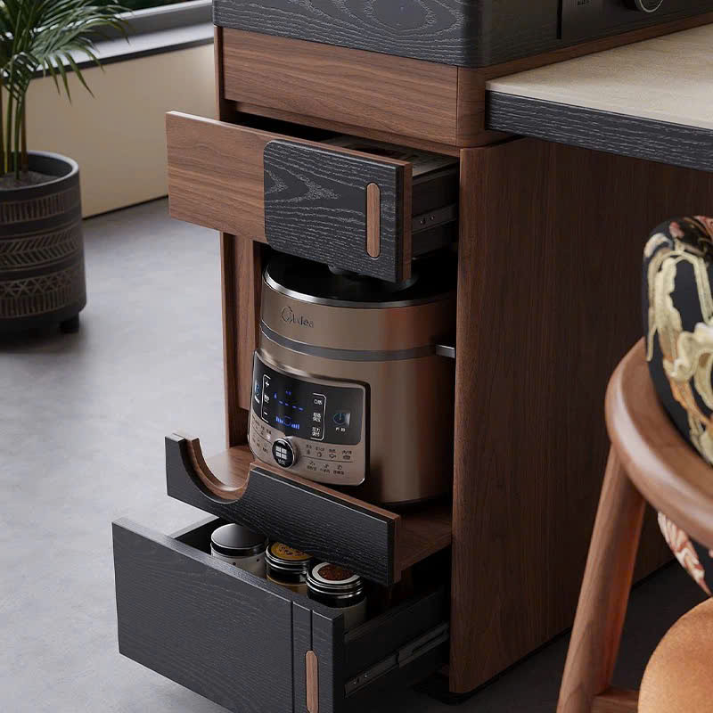Khu vực kệ được thiết kế thoáng khí, phù hợp đặt các thiết bị như nồi cơm, máy xay, nồi chiên hoặc lò vi sóng, đảm bảo an toàn và vận hành hiệu quả.